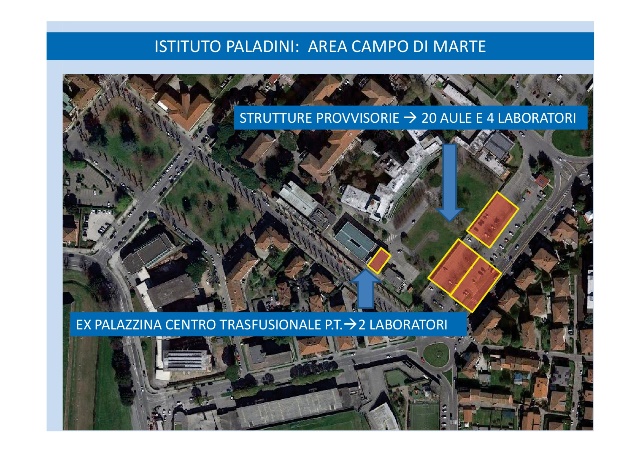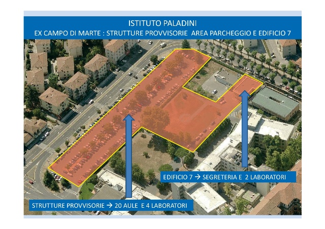 Paladini. Tutto nell'area di campo di Marte. Moduli con 20 aule e 4 laboratori (2 nei moduli nel parcheggio e 2 nell'edificio 7 a piano terra);