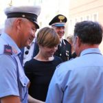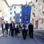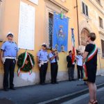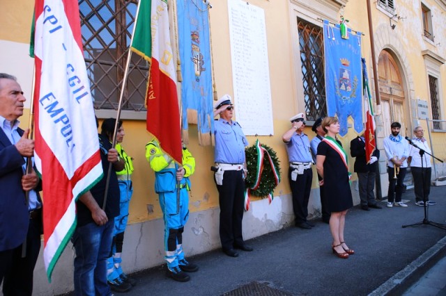 Dopo la messa, il corteo con in testa il gonfalone comunale ha raggiunto piazza 24 luglio e il sindaco Brenda Barnini, a nome dell'amministrazione comunale, ha deposto una corona di alloro alla Lapide-Ricordo.