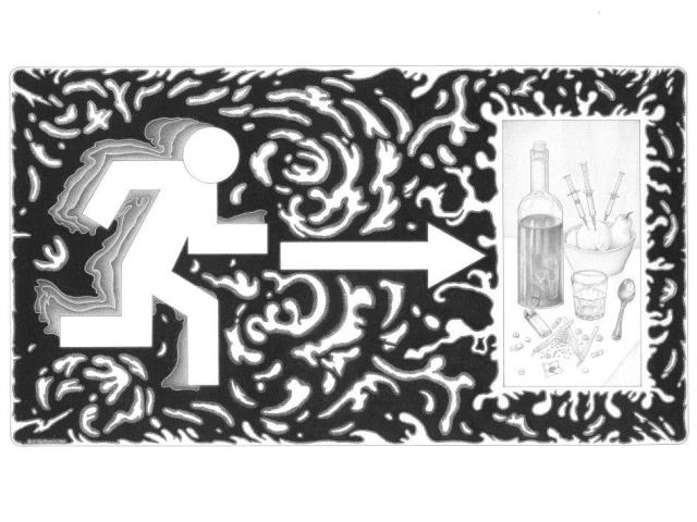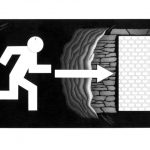 La fiducia nella fuga - sarcastico e drammatico il titolo dei lavori: “Vie d’uscita” - si compie su un tessuto di sintesi proprio dei contenuti della Trappola successiva. Avvolge il protagonista anonimo, ideale e stilizzato - come da cartelli urbani - vuoto nei suoi connotati rispetto alla ridondanza, l’artificio e la ricercatezza del segno che tesse lo sfondo in cui - apparentemente - si muove.