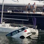 In pochi minuti, l’auto si è inabissata alcuni metri più avanti, a fianco di un M/Y Perini regolarmente ormeggiato.