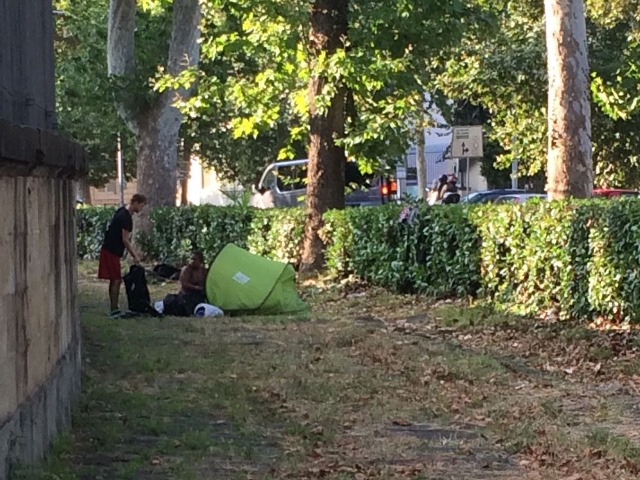 Hanno deciso di fare camping in città e hanno montato la tenda al sul vialetto pedonale di piazzale Donatello. Ma sono stati individuati e multati dalla Polizia Municipale. La pattuglia stava passando stamani alle 7.15 quando ha visto una tenda da campeggio montata al centro del piazzale Donatallo, per la precisione nel vialetto pedonale tra il muro di cinta del Cimitero degli Inglesi e la siepe al centro piazza. Gli agenti si sono fermati e si sono recati alla tenda: qui hanno trovato una coppia di ungheresi che è stata multati (sanzione da 160 euro). La tenda è stata sequestrata.
