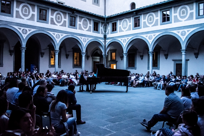 Sulle note senza tempo del pianista Roberto Cacciapaglia si è chiuso sabato 28 luglio il Musart Festival di Firenze. Un concerto per piano solo, alle prime luci dell’alba nel Chiostro degli Uomini dell’Istituto degli Innocenti, a cui hanno partecipato oltre 300 spettatori (con biglietti esauriti da settimane).