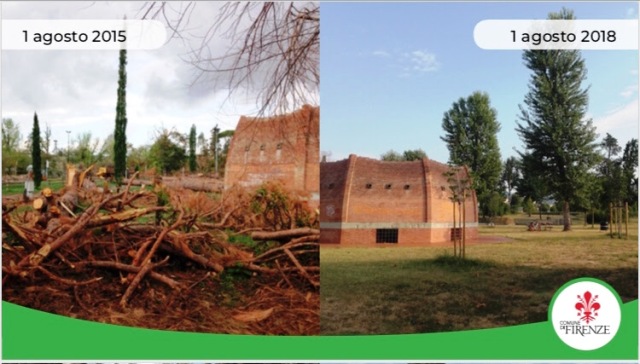Il 1° agosto del 2015 infatti una violenta tromba d'aria colpì una parte di Firenze Sud. Furono abbattuti 475 alberi solo nel Quartiere 3, di cui 254 al Parco dell’Anconella e dell’Albereta (complessivamente gli alberi caduti, compresi quelli dei giardini privati, furono 1400). Oggi, tre anni dopo, i parchi e i giardini pubblici sono rinati.