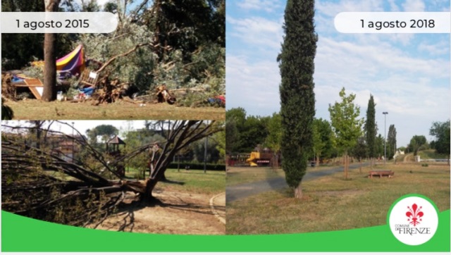 Il 1° agosto del 2015 infatti una violenta tromba d'aria colpì una parte di Firenze Sud. Furono abbattuti 475 alberi solo nel Quartiere 3, di cui 254 al Parco dell’Anconella e dell’Albereta (complessivamente gli alberi caduti, compresi quelli dei giardini privati, furono 1400). Oggi, tre anni dopo, i parchi e i giardini pubblici sono rinati.