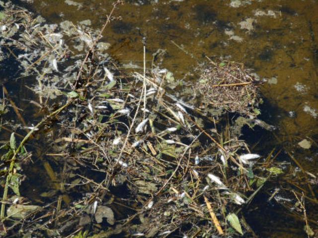 Numerosi pesci morti, in prevalenza di piccole dimensioni, si trovavano in prossimità del salto posto alla base dell’attraversamento carrabile del fosso e diminuivano progressivamente risalendo il corso fino a scomparire a circa 500 metri.