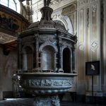 In tal senso con l’opera Infinito Fabio Viale aggiunge certamente qualcosa al luogo di culto che a sua volta aggiunge e interagisce con le opere realizzate. Una scultura in marmo nero che rappresenta due pneumatici inanellati ricavati da un unico blocco, quasi una lettura all’interno del Battistero analoga a due fedi nuziali e all’unione di due persone per una procreazione futura che porterà al primo dei sacramenti della Chiesa cattolica, il Battesimo.