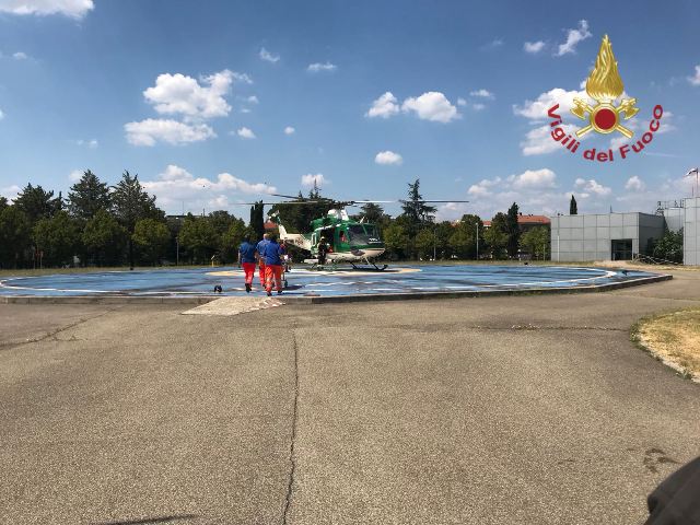 Motociclista recuperato dall'elicottero dei vigili del fuoco dopo l'incidente