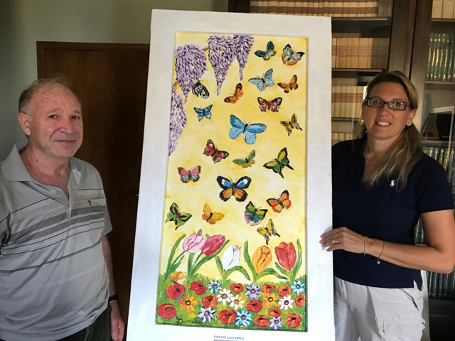Luigi Dimitrio, dopo aver partecipato ad alcune collettive a Cerreto Guidi, ha deciso di donare alcune sue opere al Comune. Per ringraziarlo di questo gesto, il sindaco lo ha ricevuto nella Sala dei Matrimoni, dove le coloratissime opere sono momentaneamente esposte.