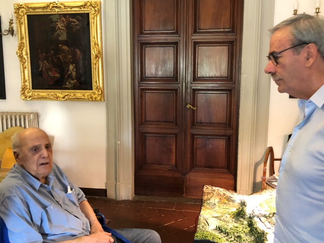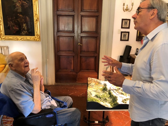 Accademico degli Euteleti e vincitore del concorso nazionale per il monumento a Pinocchio nel 1953, l’Architetto Baldi ha espresso l’intenzione di donare il plastico di San Miniato da lui realizzato all’Amministrazione comunale ed è stato invitato dal Sindaco Gabbanini a recarsi nella Città della Rocca per una cerimonia pubblica in cui tutta la popolazione lo possa festeggiare. “Salute permettendo non mancherò” – assicura Baldi, che sigla l’incontro con il proposito di onorare l’invito in occasione della 48^ Mostra Mercato Nazionale del Tartufo Bianco di San Miniato, in apertura il 10 novembre prossimo. Il Sindaco Vittorio Gabbanini dichiara orgogliosamente: “siamo onorati che l’Architetto Baldi ci abbia aperto le porte della sua casa e, soprattutto, che ci abbia fatto dono dei suoi preziosi ricordi. Per dirgli grazie gli ho consegnato una terracotta che riproduce la “sua” Rocca e la medaglia d’argento coniata per il 150° della nascita di Carducci, idealmente associando il suo operato a quello di tutti coloro che hanno accresciuto il prestigio della Città delle venticinque miglia”.