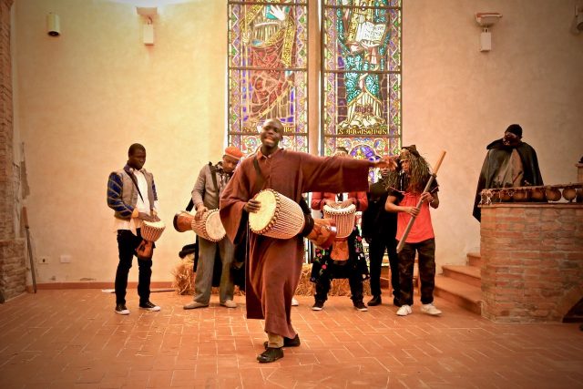 Dopo la consueta cena sulla terrazza Del Campana Guazzesi, alle 22 in piazza XX settembre avrà luogo lo spettacolo “Orestea Africana. Deg Nga Wolof”, con i richiedenti asilo della casa della pace Shalom di Collegalli. Un lavoro importante, nato proprio al Palio di San Rocco esattamente un anno fa, quando ebbe luogo un'esibizione fuori programma da parte dello stesso gruppo, guidato da Andrea Mancini. Da allora è stata fatta tanta strada, spettacoli in tutta Italia e una naturale riduzione del gruppo teatrale, che negli ultime mesi ha reso necessaria una rimessa in scena, stavolta firmata dalla regista Paola Bolelli, reduce da esperienze internazionali e allieva del grande Nikolaj Karpov, un indimenticato docente della biomeccanica di Vsevolod Mejerchold, tante volte presente nella nostra città (nei laboratori di “Prima del Teatro”), dove nel 2007 la casa editrice Titivillus gli pubblicò il bellissimo “Lezioni di movimento scenico”.