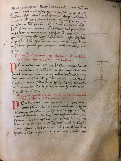 Il codice sancascianese è in ottimo stato di conservazione; è costituito da 172 carte pergamene scritte con inchiostro nero, mentre i titoli e i capilettera sono in inchiostro in rosso. A margine di ogni pagina possiamo leggere numerose e interessanti integrazioni e correzioni dei revisori fiorentini, compiute dal 1358 al 1367. Inoltre il testo è corredato da alcuni disegni, tutti di grande interesse culturale, ma soprattutto uno colpisce l’attenzione: il ritratto di un uomo dal mento pronunciato e la barba incolta, naso prominente, sguardo vigile e corporatura robusta, con una mano brandisce una spada e con l’altra regge uno scudo, in testa indossa un elmo; forse il primo ritratto che si conosca di un sancascianese? Questo antenato medievale ha tutta dall’aria un uomo risoluto e combattivo ma che oggi ispira un’affettuosa simpatia (le immagini in allegato al testo sono state concesse dal Ministero dei Beni e delle Attività Culturali del Turismo /Archivio di Stato di Firenze). Altri disegni raffigurano animali, stadere, armi e la campana del Comune che scandiva il tempo della giornata sancascianese, quella campana che suonava nei momenti di pericolo, in caso di attacco nemico, ma anche nelle occasioni di festa, per celebrare le nozze di un ufficiale del comune o per le grandi e solenni cerimonie della festa di San Cassiano.