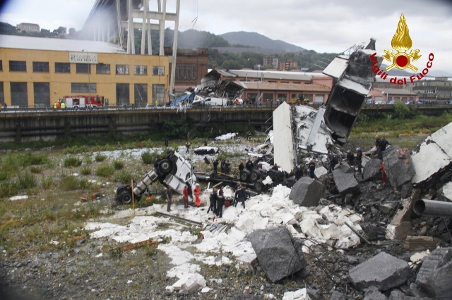Il cedimento sarebbe di tipo strutturale ma, secondo un testimone, un fulmine ha colpito in pieno il ponte durante un nubifragio. Non ci sono stati accertamenti in merito a questa ipotesi per il momento. Estratte due persone vive dalle macerie dove diverse auto sono incastrate e schiacciate. Entrambe le carreggiate sono precipitate al suolo per circa cento metri, da un'altezza di 45 metri. Una trentina di vetture e mezzi pesanti stavano passando sul ponte al momento del crollo. Il crollo ha sfiorato i capannoni di Ansaldo Energia. Colpito una parte del centro Amiu, l'azienda ambientale del Comune. Considerando il periodo festivo, si ritiene che possano non essere rimasti coinvolti operai. Progettato dall'ingegnere Riccardo Morandi, fu costruito negli anni Sessanta. Forte corrente di vendite in Borsa su Atlantia, controllante di Autostrade per l'Italia che fa sapere: era in corso un consolidamento del ponte. Il premier Giuseppe Conte arriverà stasera a Genova.
