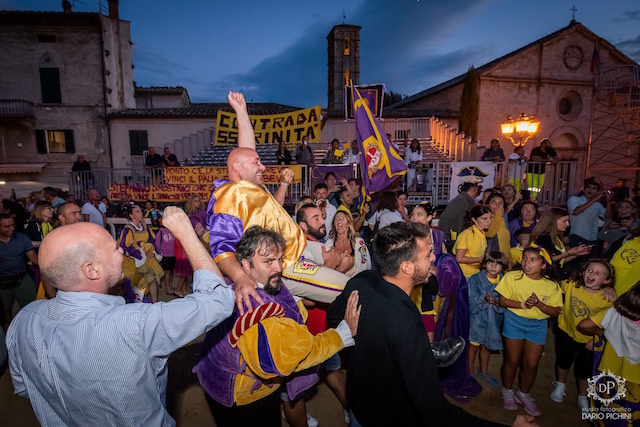 Inutile sottolineare il grandissimo entusiasmo dei contradaioli vittoriosi, che hanno sventolato le bandiere giallo-viola: tra canti e suoni di tamburo hanno portato in trionfo il loro campione Stefano Capocci. Come tradizione, si è formato un corteo per le vie del centro storico che poi si è concluso con una cena. Il sindaco di Sarteano, Francesco Landi, sottolinea come “i contradaioli, in particolare quelli più giovani, sono il vero valore della Giostra, quelli che stanno dando una continuità a una manifestazione antica, ripresa nel 1982 e che grazie al loro tifo e ai loro colori torna a crescere”.