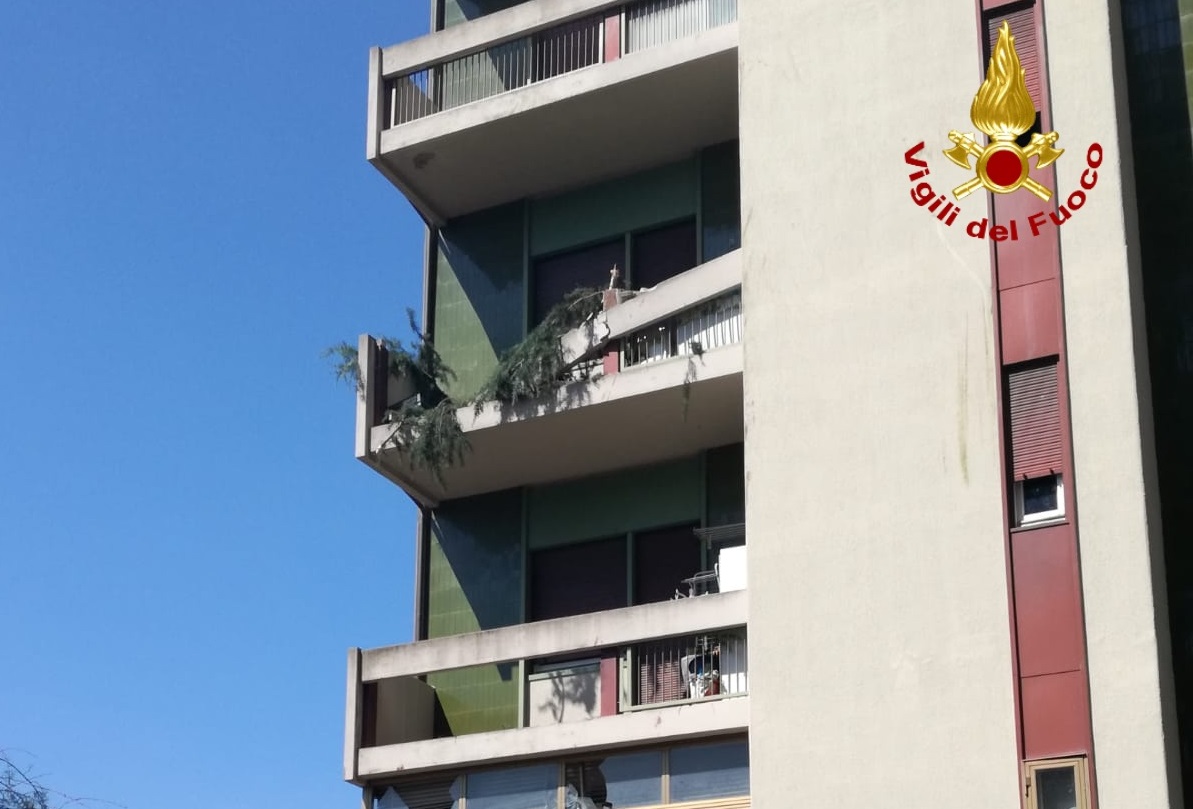 Un grosso albero è caduto su un edificio in via Tiziano ad Arezzo provocando ingenti danni ad alcuni balconi. Uno di questi è stato praticamente distrutto dalla caduta della pianta. Sul posto sono intervenuti i vigili del fuoco di Arezzo. Fortunatamente non ci sarebbero persone coinvolte.