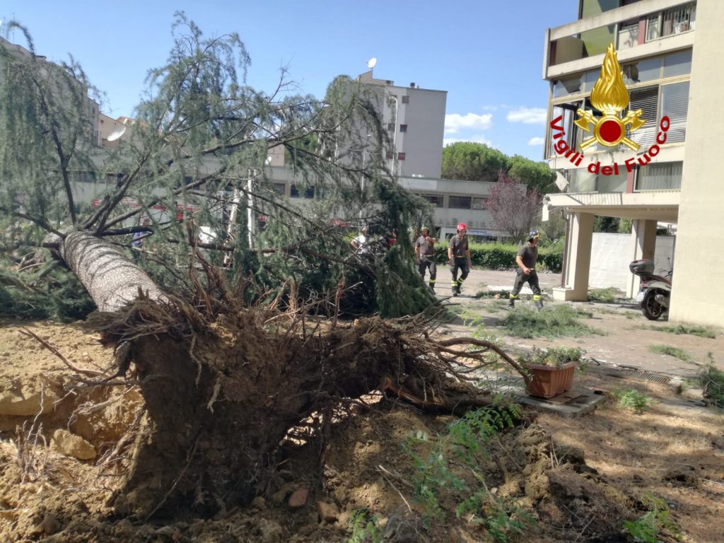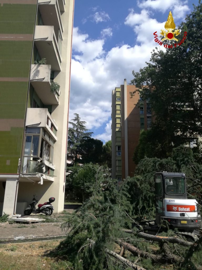 Un grosso albero è caduto su un edificio in via Tiziano ad Arezzo provocando ingenti danni ad alcuni balconi. Uno di questi è stato praticamente distrutto dalla caduta della pianta. Sul posto sono intervenuti i vigili del fuoco di Arezzo. Fortunatamente non ci sarebbero persone coinvolte.