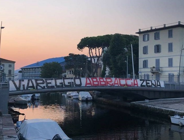 'Viareggio abbraccia Zena', è questo quanto si legge su uno striscione esposto questa mattina dagli ultras del Viareggio calcio per esprimere la loro vicinanza a Genova e alle vittime del crollo del ponte Morandi. Lo striscione è stato attaccato sul ponte girante che porta in Darsena. Gli ultras del Viareggio sono peraltro gemellati con quelli del Genova. Lo striscione era già stato esposto a Camaiore ieri durante il triangolare con il Pisa e la squadra locale per il torneo 'Viareggio 100'.