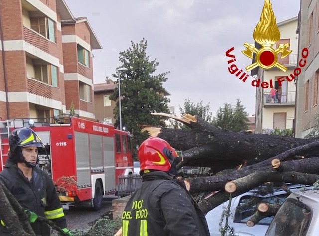 È stato tranciato pure un cavo della linea elettrica, che ha lasciato senza corrente alcune case. Allagamenti, invece, lungo la sr68. Non si registrano feriti ma il conducente di un'auto è stato estratto illeso dall'auto colpita dalla chioma di un albero caduto mentre viaggiava in località Selvamaggio.