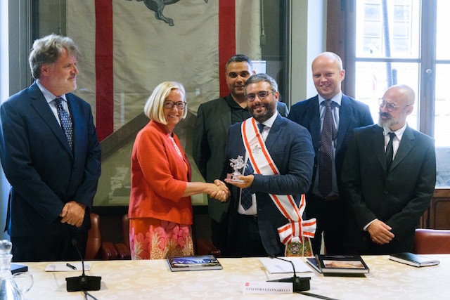 È stata ricevuta oggi in Consiglio regionale una delegazione di trentatre parlamentari norvegesi guidata da Marit Arnstad, Ministro dei trasporti tra il 2012 e il 2013, e Trygve Slagsvold Vedum leader del Partito di Centro (Senterpartiet, SP). Lo scopo dei parlamentari era quello di approfondire la conoscenza sulle origini del Movimento 5 Stelle e sul funzionamento della piattaforma Rousseau, nonché confrontarsi su temi di interesse comune quali: la democrazia diretta, il concetto di legalità, la lotta ai privilegi e la tutela dell’ambiente. Con l’occasione i consiglieri del Movimento 5 Stelle, per conto del Consiglio Regionale, hanno conferito al capo delegazione norvegese l’onorificenza del Pegaso.