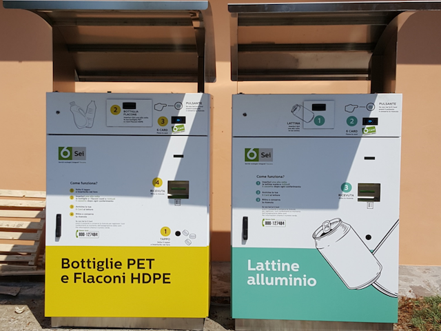 Il funzionamento delle nuove attrezzature è molto semplice: basta aprire lo sportello dell’eco-compattatore e inserire, uno alla volta, i propri imballaggi in plastica (come bottiglie in PET e flaconi HDPE) o alluminio (come lattine e scatolette). Una volta conferito il materiale, questo sarà compattato dalla macchina per consentire di contenere al proprio interno una quantità considerevole di rifiuto differenziato. La macchina rilascerà poi uno scontrino dove sarà indicata la quantità di rifiuti conferita.