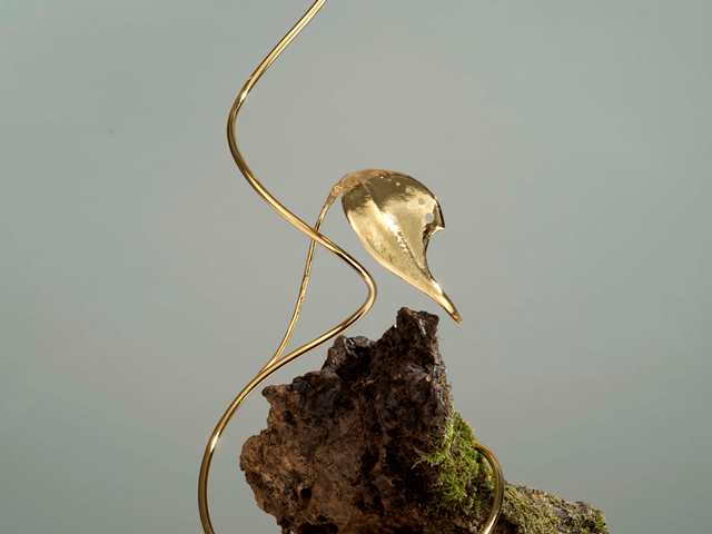 L’artista ha cercato e scelto materiali del territorio senese, come la pietra e la radica di legno, e li ha uniti a metalli, in particolare ferro e rame, che da sempre caratterizzano la tradizione artigianale nella quale è cresciuta. Non mancano materiali prettamente contemporanei, come il plexiglass, per sottolineare l’inarrestabile scorrere del tempo, e con esso l’avvento di materie nuove per dar forma all’energia creativa.