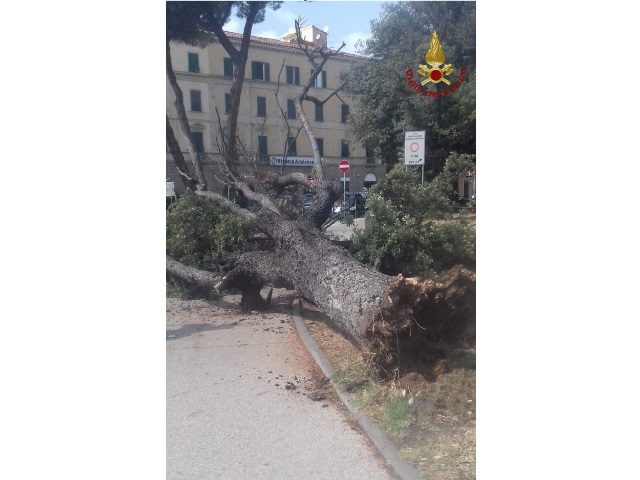 Un grosso albero è crollato in Piazza Guerrazzi a Pisa. Il personale della sede centrale di Pisa sta intervenendo. Fortunatamente non si riscontrano danni né a cose né persone. Sul posto vigili urbani e Protezione civile del Comune.
