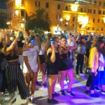 A vederli da distanza c’era da chiedersi come potevano tenere quei ritmi, ma il segreto era presto svelato: la musica arrivava in cuffia, nitida e pulita, regalando sensazioni particolari. Sul canale rosso la dance degli anni ‘90, italiana, cartoons e trash, sul canale verde reggaeton e hiphop, sul canale blu il commerciale e House ed i giovani potevano scegliere cosa ascoltare con l’apposito selettore, dando vita praticamente ad una gara tra i dj per stabilire chi fosse il più seguito. Il tutto è andato avanti fino oltre le una senza che nessuna delle strutture vicine alla piazza abbia esposto reclamo per il rumore. Veramente un modo moderno ed intelligente per portare la musica da discoteca nei centri storici senza creare alcun disturbo.