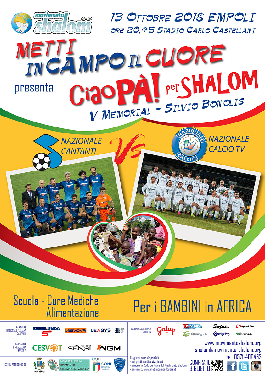 Per il terzo anno consecutivo torna in Toscana “Metti in campo il cuore”, una partita di beneficienza tra cantanti e personaggi dello spettacolo per raccogliere fondi per i progetti di cooperazione del Movimento Shalom. Torna ancora una volta allo Stadio Castellani di Empoli allo Stadio Castellani dove aveva esordito nel 2016, ricevendo una splendida accoglienza con 10.000 biglietti venduti e 50.000 euro raccolti. A scendere in campo il 13 ottobre saranno ancora una volta la Nazionale Italiana Cantanti capitanata da Paolo Belli, e la Nazionale Calcio TV capitanata da Paolo Bonolis. La partita è organizzata dal Movimento Shalom con il patrocinio del Comune di Empoli, e dell’Unione dei comuni de Circondario, del CONI e dell’Empoli FC.