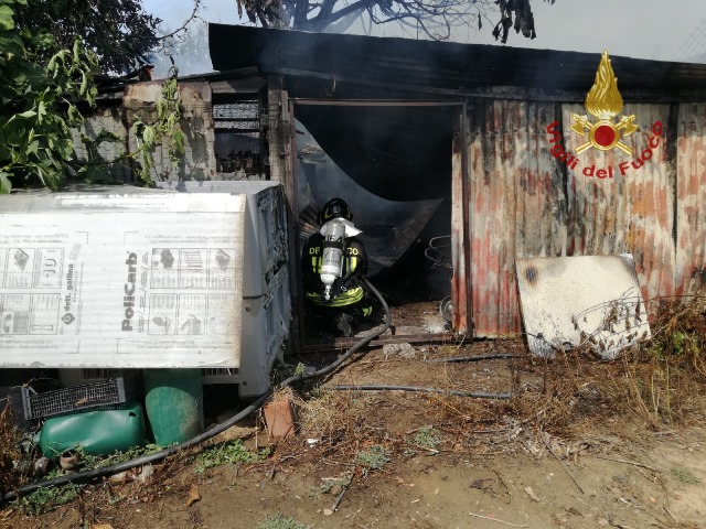 Un altro intervento in Località Alberoro, dove per cause in corso di accertamento, è scoppiata una di bombola di Gpl, che ha provocato l’incendio di una capanna agricola. Nessuna persona coinvolta.