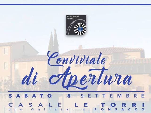 Sabato 8 settembre la Round Table 73 di Pontedera, presidente Matteo Tagliaferri, aprirà l’anno sociale con una Conviviale presso Casale Le Torri di Ponsacco, dedicando un’asta benefica all’Associazione Nel sorriso di Valeria.