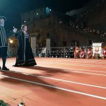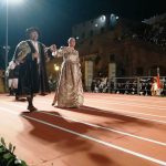 Accompagnata dal 'collega' Paolo Masetti, il sindaco di Cerreto Guidi Simona Rossetti ha chiuso la sfilata storica di stasera, venerdì 31 agosto, in occasione del 50esimo Palio del Cerro. Accomunati dalla presenza di ville di epoca medicea (l'Ambrogiana per Montelupo e la Villa Medicea per Cerreto Guidi), i due primi cittadini sono stati preceduti dalle quattro contrade cittadine (Porta Caracosta, Santa Maria al Pozzolo, Porta Fiorentina e Porta al Palagio), con gli sbandieratori e i figuranti in perfetta tenuta d'epoca.