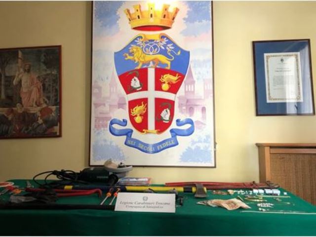I Carabinieri delle Compagnie di Sansepolcro, coadiuvati da quelli di Spoleto, a seguito di una brillante operazione, hanno tratto in arresto per furto in abitazione in concorso aggravato continuato, resistenza a Pubblico Ufficiale, lesioni personali aggravate, danneggiamento aggravato, ricettazione e possesso ingiustificato di chiavi e grimaldelli, due giovani pregiudicati di nazionalità albanese di 26 e 22 anni, senza fissa dimora, che negli ultimi mesi hanno perpetrato circa 20 furti nelle provincie di Arezzo, Perugia, Pesaro Urbino, Ancona e Varese.
