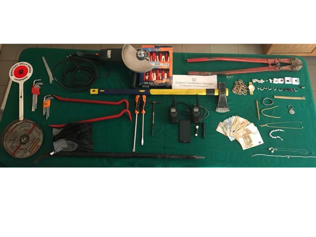 I Carabinieri delle Compagnie di Sansepolcro, coadiuvati da quelli di Spoleto, a seguito di una brillante operazione, hanno tratto in arresto per furto in abitazione in concorso aggravato continuato, resistenza a Pubblico Ufficiale, lesioni personali aggravate, danneggiamento aggravato, ricettazione e possesso ingiustificato di chiavi e grimaldelli, due giovani pregiudicati di nazionalità albanese di 26 e 22 anni, senza fissa dimora, che negli ultimi mesi hanno perpetrato circa 20 furti nelle provincie di Arezzo, Perugia, Pesaro Urbino, Ancona e Varese.