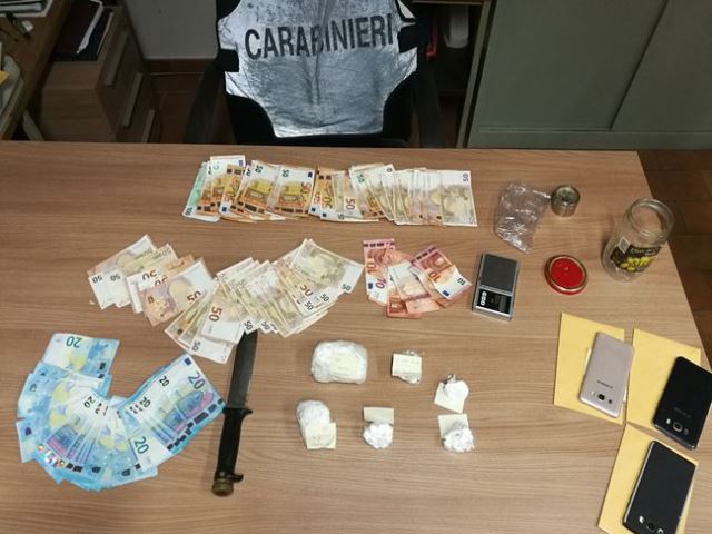 Alla vista dei Carabinieri alcuni nordafricani, mostrando segni di evidente nervosismo hanno dato in escandescenza e uno di essi ha estratto un coltello e minacciando i militari che prontamente lo hanno disarmato traendolo in arresto.