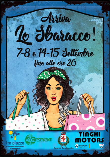 Organizzato dal Centro Commerciale Naturale “Tre Piazze” in collaborazione con la Confesercenti e il Comune di Castelfiorentino, lo “Sbaracco” si svolgerà nel primo venerdì e sabato (7 e 8 settembre) in concomitanza con la settimana dell’AVIS, che coincide - venerdì 7 settembre – con la “Festa della Rificolona”, un appuntamento molto sentito da tutti i bambini.