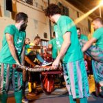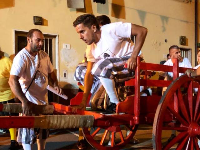 Nella prima prova della settimana, i quattro rioni degli Azzurri delle Quattro Strade, Rossi della Torricella, Verdi della Buca e Bianchi di Mezzo si sono sfidati nel tradizionale “Tiro del Barroccio”. Una gara dura nella quale dieci partecipanti per squadra devono trainare il “barroccio” per due giri di San Martino. A vincere è stato il rione dei Rossi, seguito dagli Azzurri, dai Verdi e dai Bianchi.