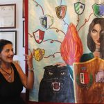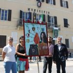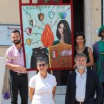Presentato stamani in Sala Giunta il “cencio” della quarta edizione di "Calambur - La disfida dei rioni" che verrà conteso dai sei rioni certaldesi domenica 16 settembre in piazza Boccaccio. La tela, animata da un soggetto femminile, è stata dipinta da Maria Teresi che, ha spiegato subito dopo, ha realizzato un palio “al femminile”, con la figura principe rappresentata nella tela da una donna con uno scudo e affiancata da un grande felino, a significare la centralità ma anche la debolezza della donna che deve essere protetta, ma al tempo stesso la determinazione e la grinta nell’andare avanti.