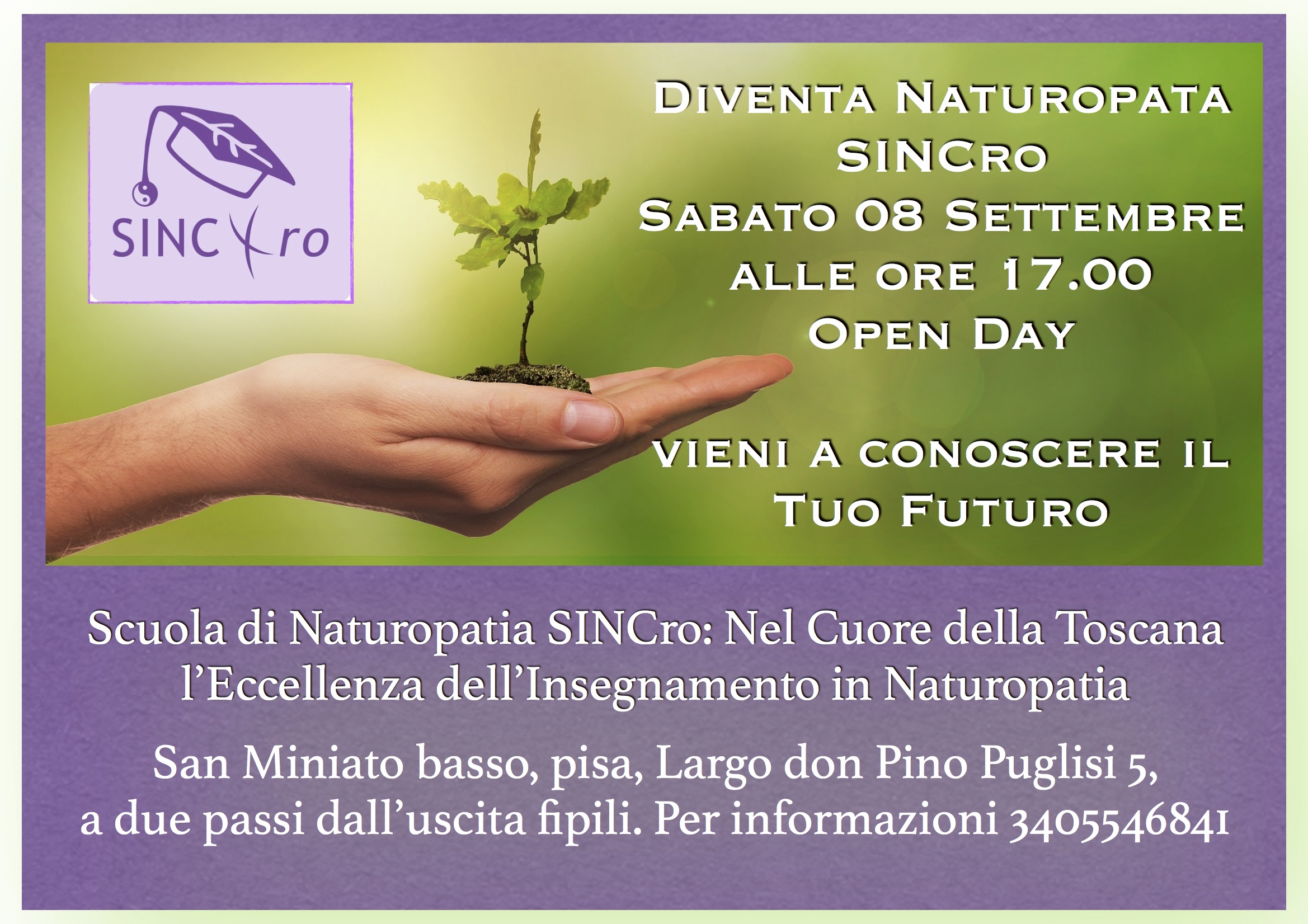 La scuola di Naturopatia SINCro di San Miniato Basso (Pisa) ti invita al suo open day in programma per sabato 8 settembre 2018 alle 17.