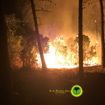 All'origine dell'incendio un fulmine del breve temporale del pomeriggio caduto sulla pianta in foto. Sono bruciati 2500 m di pineta e sottobosco con grave rischio di estensione alla riserva del Belagaio. Per fortuna l'assenza di vento e l'elevata umidità hanno dato un grosso aiuto nel contenimento dell'incendio.