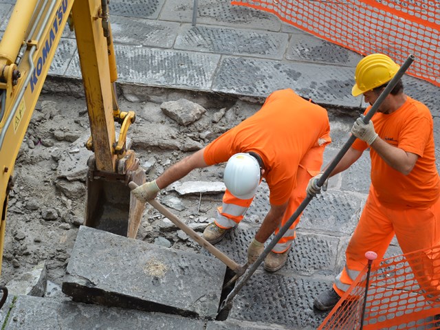 In dettaglio i lavori consistono nella sistemazione di porzioni di lastricato danneggiate partendo dalla rimozione della pavimentazione esistente. Le pietre in buono stato saranno riutilizzate, mentre quelle rotte o usurate verranno sostituite. Una volta rimosso il lastricato verrà eseguito uno scavo sottostante in modo da realizzare un massetto di cemento, cioè un piano più stabile e robusto sul quale poi saranno murate le pietre.