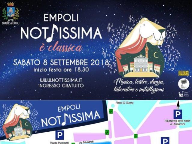 Sabato prossimo 8 Settembre ad Empoli c'è il consueto appuntamento con Nottissima 2018 dalle ore 18.30. Ingresso Gratuito. Quest'anno è dedicata alla Musica Classica.
