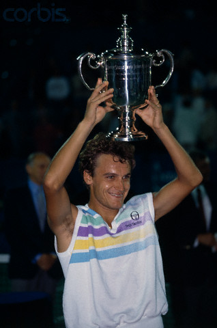 11 Sep 1988, Queens, New York City, New York State, USA --- Mats Wilander lifts the winner's trophy for the crowd to see after winning the 1988 U.S. Open tennis tournament. --- Image by © Rick Maiman/Sygma/Corbis