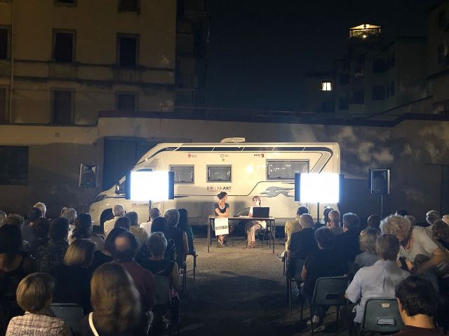 Vere e proprie serate di avvicinamento ai temi dell’arte, per consentire a tutti di appassionarsi e innamorarsi della cultura. Per cinque sere il camper sosterà infatti in cinque diverse piazze, dove saranno allestite sedie e attrezzature per dare vita a lezioni d’autore aperte a tutta la cittadinanza. Ieri, lunedì 10 settembre, il mezzo I LaikArt ha fatto tappa nel Q2, al Giardino di Villa Arrivabene, dove Roberta Barsanti (direttrice del Museo Leonardiano di Vinci) ha raccontato la storia di Leonardo contestualizzando l’esperienza del genio di Vinci nella vita del suo tempo.