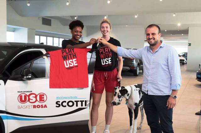 Quest’anno oltre al logo sulla magia da gioco vedremo girare per Empoli anche una Toyota C-HR ibrida bianca con il tetto nero con il logo Scotti ed Use Rosa che è stata data in comodata d’uso alle nostre due giocatrici statunitensi ed alla loro inseparabile amica Zara ( un alano chiazzato) che è già divenuta la mascotte della squadra, ed ovviamente era presenta alla consegna dell’auto.