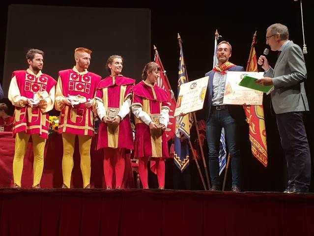 Al termine del pomeriggio è stato poi consegnato il premio Memorial cav.Aldo Trabalzini, destinato alla migliore coppia di sbandieratori e alla migliore coppia di tamburini. La giuria di esperti ha premiato anche quest’anno la contrada di Talosa come migliore coppia di sbandieratori (Simone Mosca e Francesco Perugini) e per il quinto anno consecutivo, ancora la contrada di Talosa per la migliore coppia di tamburini (Adele Giannettoni e Cristina Mosca).