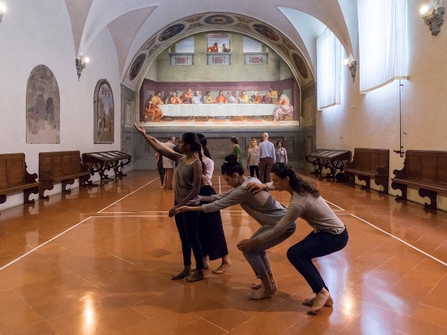 Ebbene, in questi luoghi ancora è possibile ammirare delle opere create appositamente dai Maestri della pittura: l’Ultima Cena di Andrea del Sarto (1526-27 ca.), di Andrea del Castagno (1447 ca.), di Domenico Ghirlandaio (1480), gli affreschi di Beato Angelico nel Convento (1439-43 ca.) e l’architettura di Michelozzo nella Biblioteca monumentale (1439-43 ca.) del Museo di San Marco. Si capisce subito che i cenacoli, come il complesso di San Marco, sono spazi aperti per coltivare quotidianamente l’ampiezza complessa del corpo superando le facili e pericolose semplificazioni. Questi spazi, frequentandoli, ci aiutano a stare nella città.