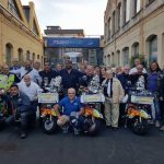 I quattro centauri, due italiani e due spagnoli, sono partiti stamattina dal Museo Piaggio di Pontedera: Andrea Nasisi e Augusto Gaudino del vespa Club “I ribelli” di Agrate Brianza rispettivamente con Vespa 300 GTS e Vespa 200 GT e i due spagnoli Miguel Macias Chavez e Rafa Guerrero del Vespa Club “Califa” di Cordoba su Vespa TX 200 e Vespa PX 200.