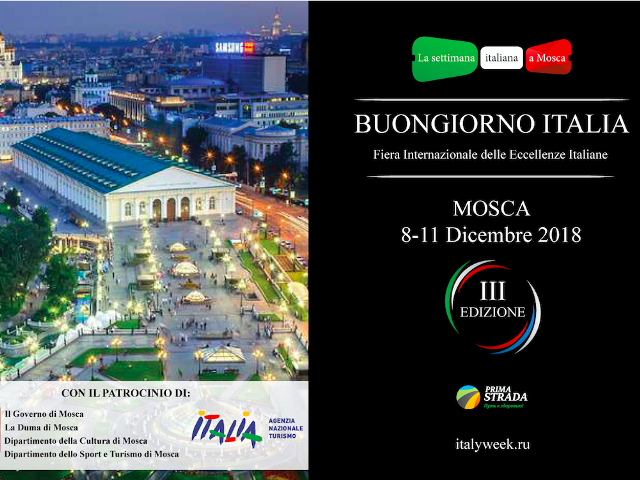 La 3° edizione della Fiera “Buongiorno Italia” , che ha sede in Mosca, è in fervente attività per essere allestita nella prima decade di dicembre.