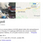 Non è certo un bel biglietto da visita quello che mostra Google agli internauti che volessero informarsi sulla città di Empoli. Al posto della fontana delle Naiadi di piazza Farinata, invece che piazza della Vittoria o il complesso degli Agostiniani, la prima immagine che appare di Empoli su Google riguarda un incendio datato 2012 di 70 metri cubi di plastica in un'azienda di Molin Nuovo. Uno scatto di Apocalypse Now che certo non rende giustizia (e poco ci incastra) con la città del Volo del Ciuco.