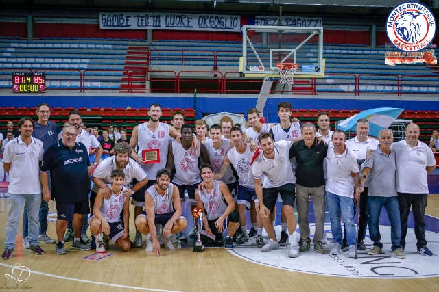 Capitan Guido Meini, tra gli applausi scroscianti del Palaterme, ha alzato la coppa al cielo: Montecatiniterme Basketball ha vinto il torneo intitolato alla memoria di Gianluca Cardelli, facendo un regalo al presidente Cardelli portando a casa la coppa a cui tiene di più. I ragazzi di coach Tonfoni, dopo la bella vittoria in semifinale contro la Virtus Siena (priva comunque di 3 titolari), si sono ripetuti stavolta contro un avversario di ben altra caratura, quella Fiorentina Basket che si pone come grande protagonista del prossimo campionato di serie B. Ma sabato sera tutta questa differenza non si è vista. Il basket d'estate invita sempre alla calma, ma per una sera i rossoblù si sono dimostrati superiori in tutto, comandando il punteggio dal primo minuto, mettendo in campo l'energia doppia rispetto agli avversari, una grande intensità sui due lati del campo e una pressione fisica e mentale che ha letteralmente spremuto la corazzata gigliata. Neppure l’espulsione di Migliori a metà del terzo quarto (doppio tecnico) ha condizionato la squadra termale, che si è compattata ancora di più ispirando un Giorgi da 22 punti e 14 rimbalzi, nominato a furor di popolo Mvp del torneo. La Fiorentina, a parte qualche lampo di Berti ed un buon finale di Drocker e Bastone, non è quasi mai riuscita a ricucire lo strappo operato da Montecatini soprattutto nel secondo quarto, quando uno show balistico di Migliori ha portato i termali sul +20 (46-26). I ragazzi di Andrea Niccolai hanno barcollato ma non mollato, con i canestri di Berti sono tornati in carreggiata ma non sono mai riusciti a completare la rimonta. Solo nell'ultimo minuto la partita è tornata in bilico, ma ci ha pensato Cipriani dalla lunetta a portare a casa la vittoria. Il precampionato lascia sempre il tempo che trova, sia nelle vittorie che nelle sconfitte. Ma questa vittoria, nel torneo più importante della stagione, deve dare tanta fiducia nei ragazzi rossoblù e consapevolezza dei propri mezzi, senza esaltarsi o montarsi la testa, solo per continuare a lavorare a testa bassa, con la certezza essere sulla strada giusta. L’ala gigliata Corrado Bianconi con 41 punti ha vinto il premio come miglior realizzatore, mentre il giovane rossoblù Samuele Moretti ha vinto il premio come miglior giovane under 21.