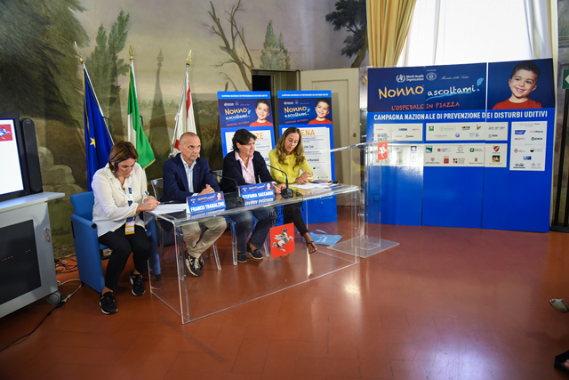 Con Stefania Saccardi, hanno presentato la campagna Sara Funaro, assessore al welfare del Comune di Firenze, Nadia Ballone, referente "Nonno Ascoltami! - Udito Italia Onlus, Franco Trabalzini, direttore UOC di Otorinolaringoiatria Azienda Ospedaliera Universitaria "Meyer"; Lorenzo Salerni, UOC di Otorinolaringoiatria, Dipartimento Scienze mediche, chirurgiche e neuroscienze - Policlinico "Santa Maria alle Scotte" - Siena; Elisa Gaudini, Reparto di Chirurgia Otologica Azienda ospedaliero-sanitaria Senese, Camilla Parmeggiani, CRI Firenze.